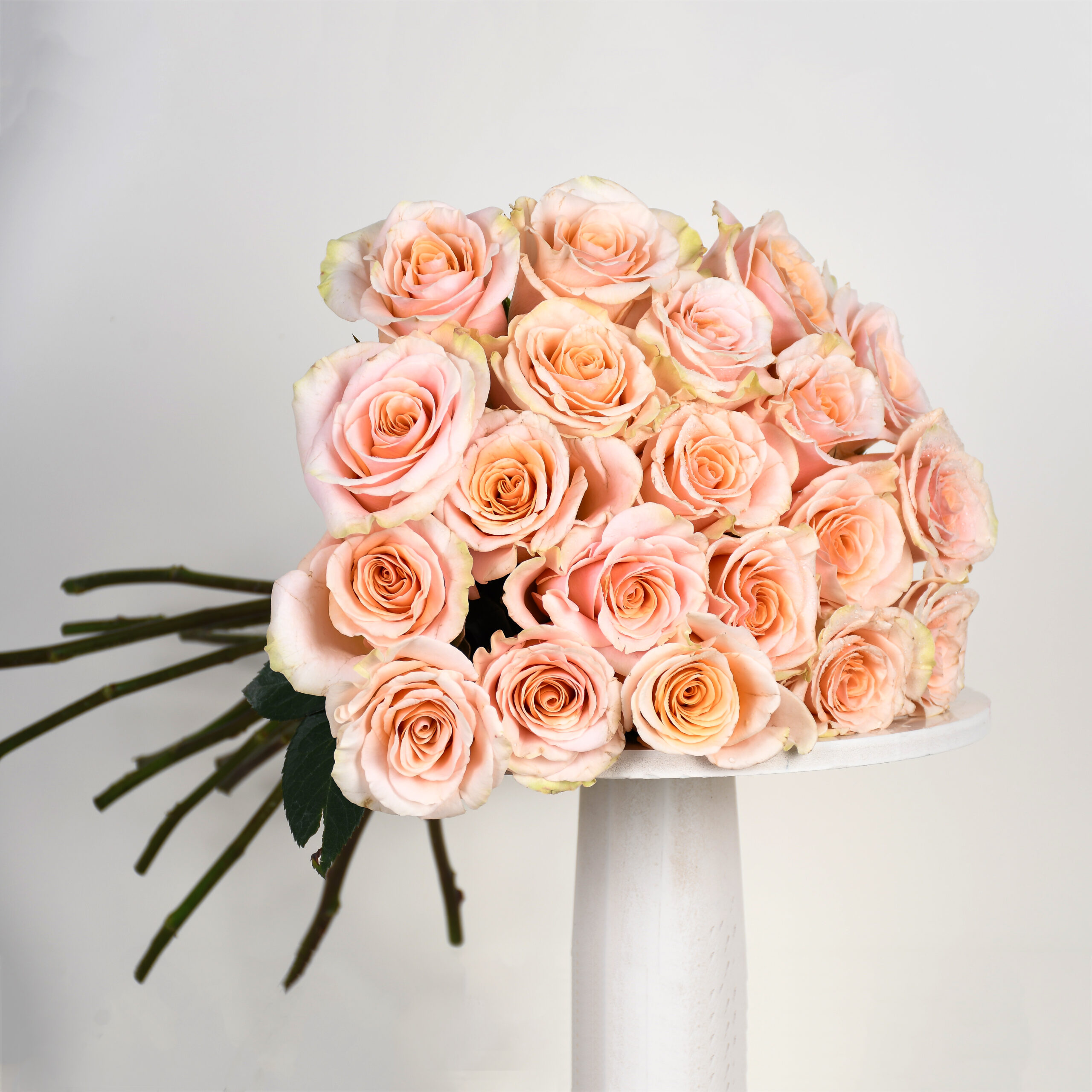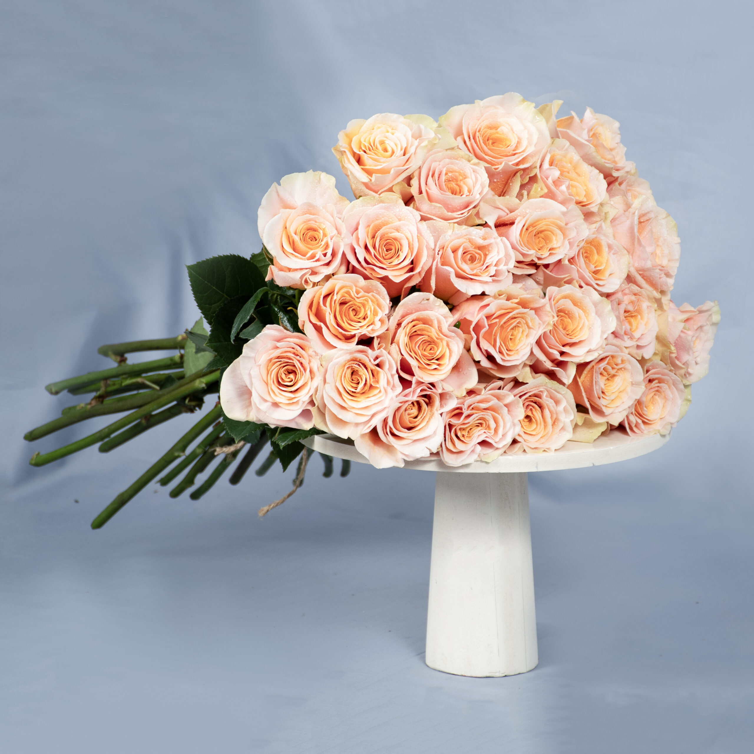 Soft, elegant, and full of warmth—this bouquet of fresh peach roses conveys sincerity, gratitude, and gentle affection. With their delicate hue and graceful charm, these roses are perfect for celebrating meaningful moments or simply brightening someone’s day.