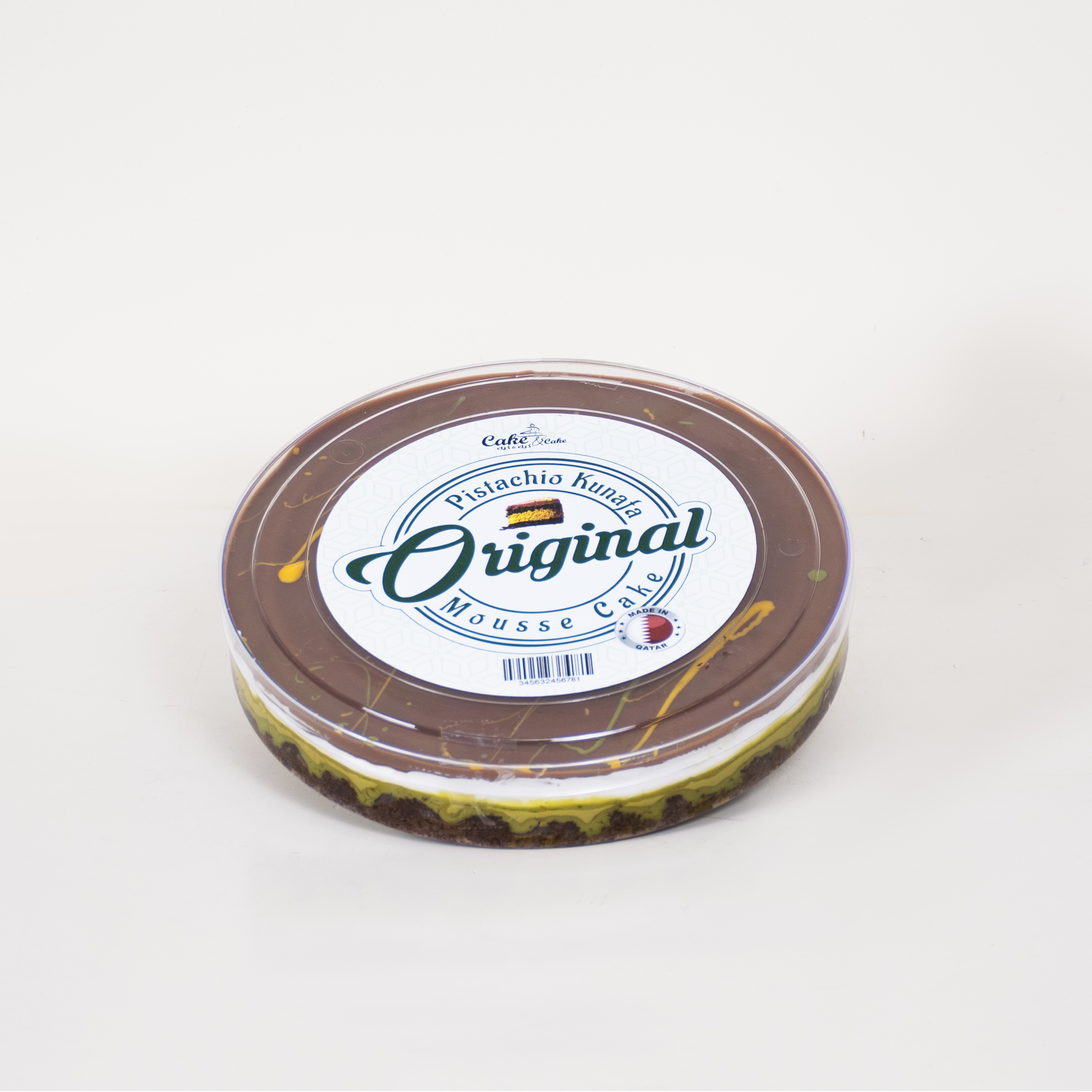 A decadent dessert featuring layers of creamy mousse, crunchy kunafa, and rich pistachio flavor, topped with smooth chocolate. Perfect for celebrations or a luxurious treat anytime.